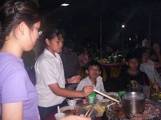 well this is the east zone youth cell first outing and the photo with prawn heads is julian doing a total of 38 prawn heads and many other food that he ate.